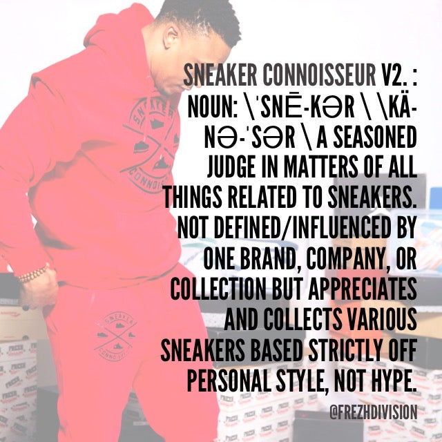 Sneaker Connoisseur: Noun: \ˈsnē-kər \ \kä-nə-ˈsər \ A seasoned judge in matters of all things related to sneakers. Not defined/influenced by one brand, company, or collection but appreciates and collects various sneakers based strictly off personal style, not hype.